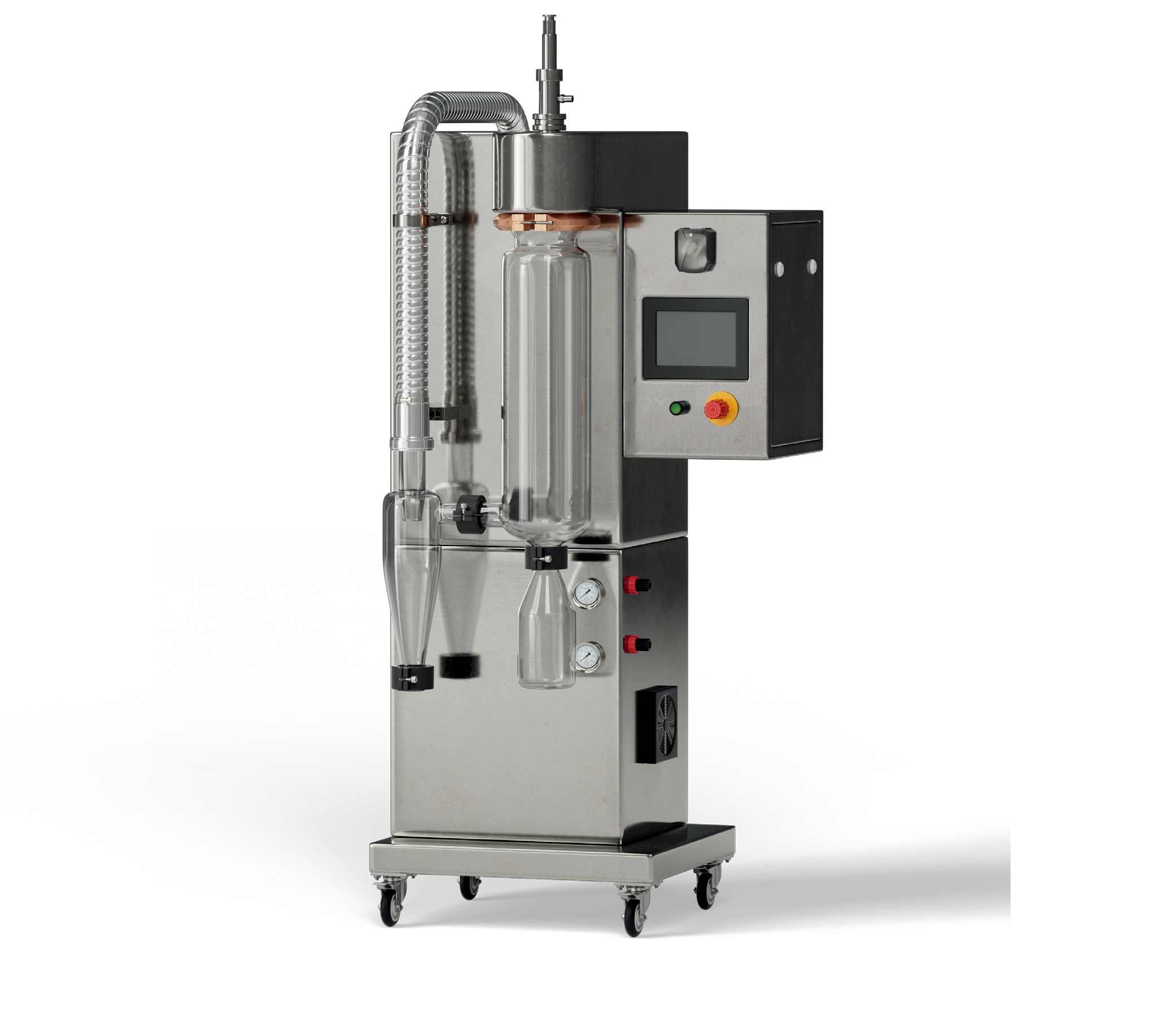 ▪ 喷雾、烘干及收集装置采用透明优质耐高温高硼硅玻璃制造,使得喷雾干燥过程在无污染及稳定的环境下进行。整个喷雾干燥实验进程可视, 便于掌控实验进程并能及时发现和调整问题。所有玻璃元件易拆卸、易清洗。