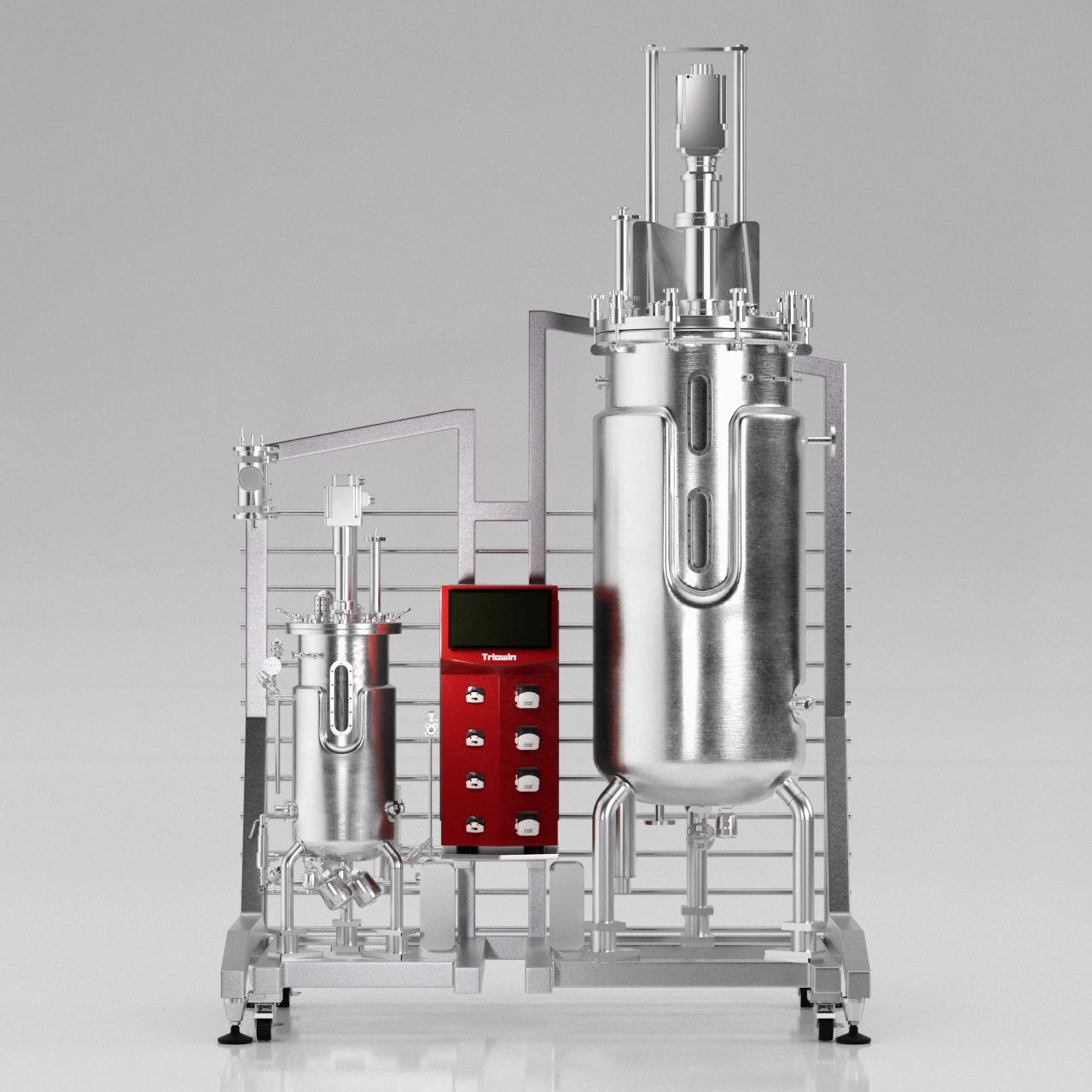 TW-XJD10发酵罐主体结构为不锈钢材质制造,一体化设计,多种功能,小巧美观,罐内无死角。特别适合实验室使用,可独立使用,也可作为种子罐,与其他发酵罐配合使用。可配置导流筒,扩展为气升式发酵罐。